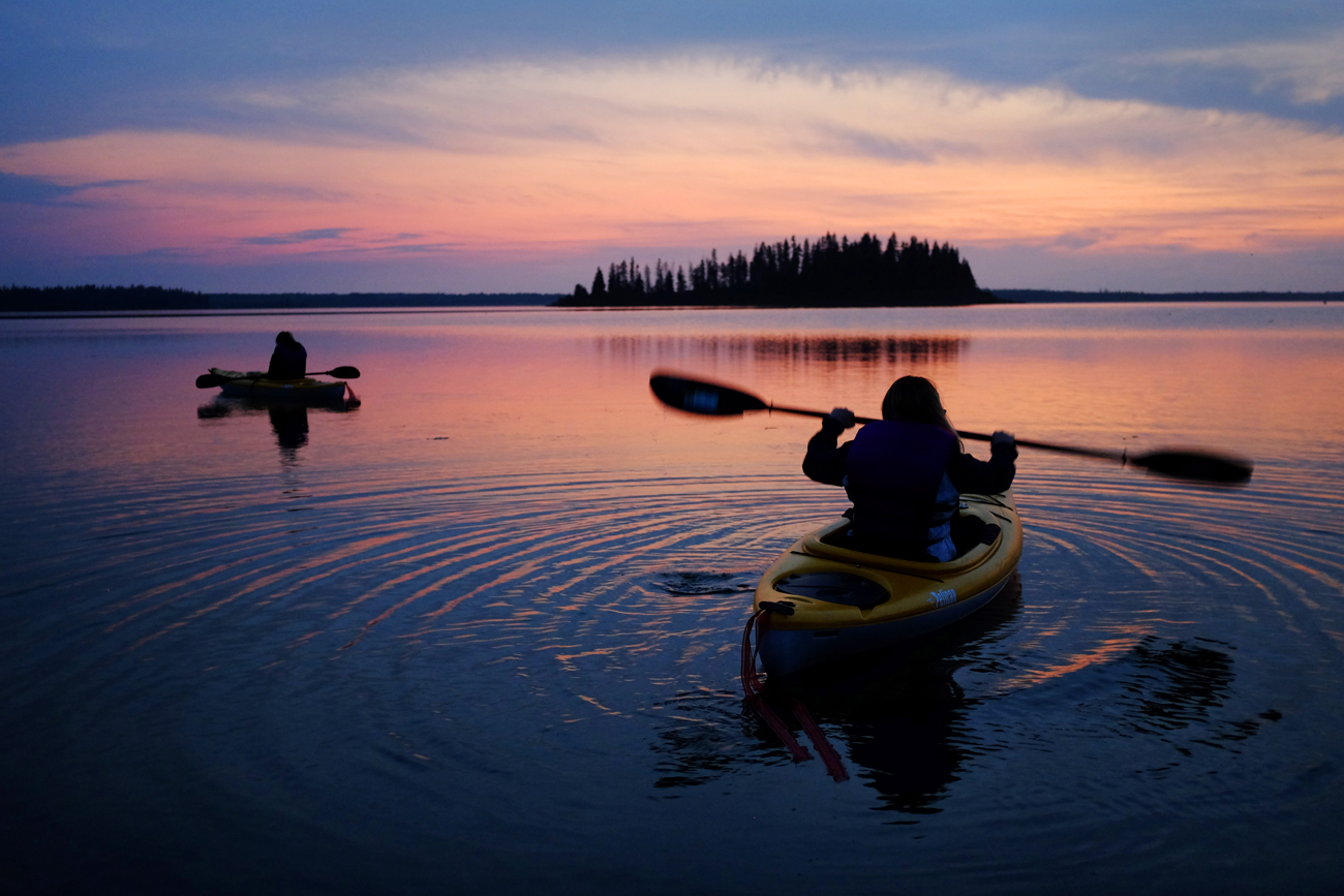 Astotin Lake August 30, 2015 Grateful for a chance to leave the city behind for a few hours, and spend time with some very dear people this weekend. Sunset photos got a bit more life when these paddlers pushed off from Sandy Beach, Astotin Lake, Elk Island National Park. View fullsize